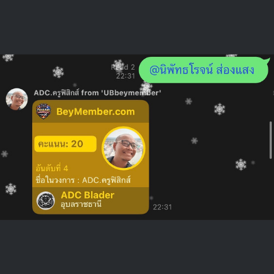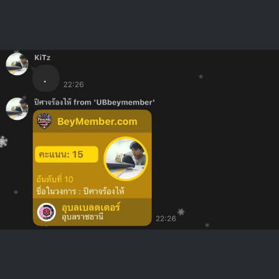 ระบบจะแจ้ง Score Card ของท่านให้ทราบในกลุ่มนั้นๆเช่นกัน ท่านสามารถพิมพ์ . เพื่อขิงกับเพื่อนในกลุ่มได้ และท่านยังสามารถพิมพ์ @ ตามด้วยชื่อเพื่อนที่ท่านต้องการดู Score Card ได้เช่นกัน